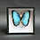 Vladimir Nabokov described morphos’ appearance as "shimmering light-blue mirrors". This beautiful specimen, from Colombia, has an astonishing range of colours depending on where you view it from – as you move it from side to side it shows deep blues, turquoises, eggshell grey, and a soft violet. The cause of this range of colours is the same as the reason why it will never fade: the colours come from the refractive properties of the scales rather than from any pigmentation of the scales themselves (they are colourless, as you can see when you angle it correctly).